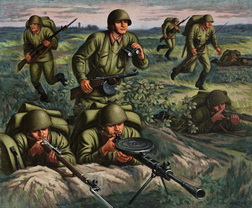 No Title-advancing Through A Town Norman Nichols | No Title-tank W/9 Men On It In The Mud Norman Nichols | Screening The Woods Norman Nichols | ||||||||||||||