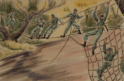 | Crossing A Stream By A Rope Bridge |